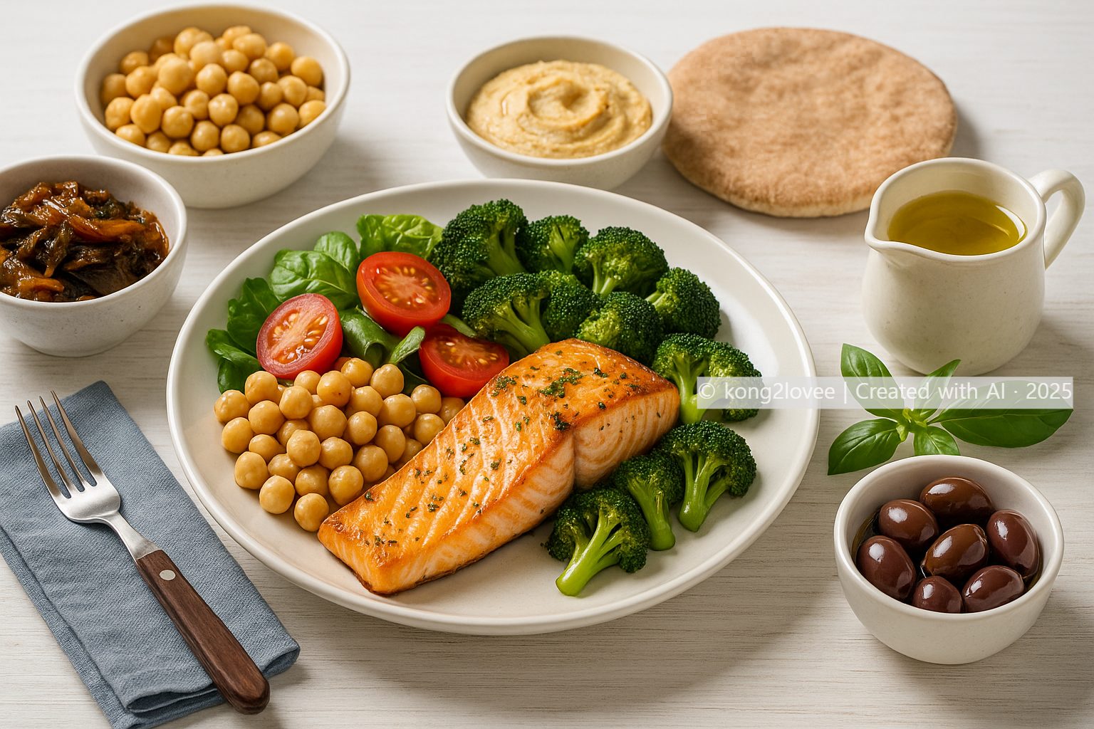 4) 시골 밥상 같은 식사, 저속노화에 딱 ! (지중해, 한식 퓨전 식단)